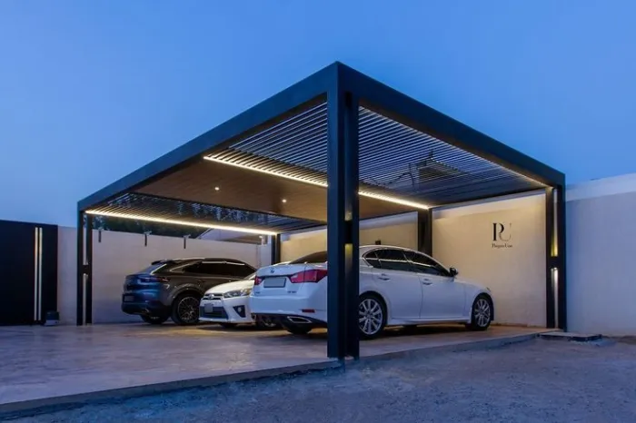 مظلات سيارات فاخرة بتصميم هندسي أنيق.